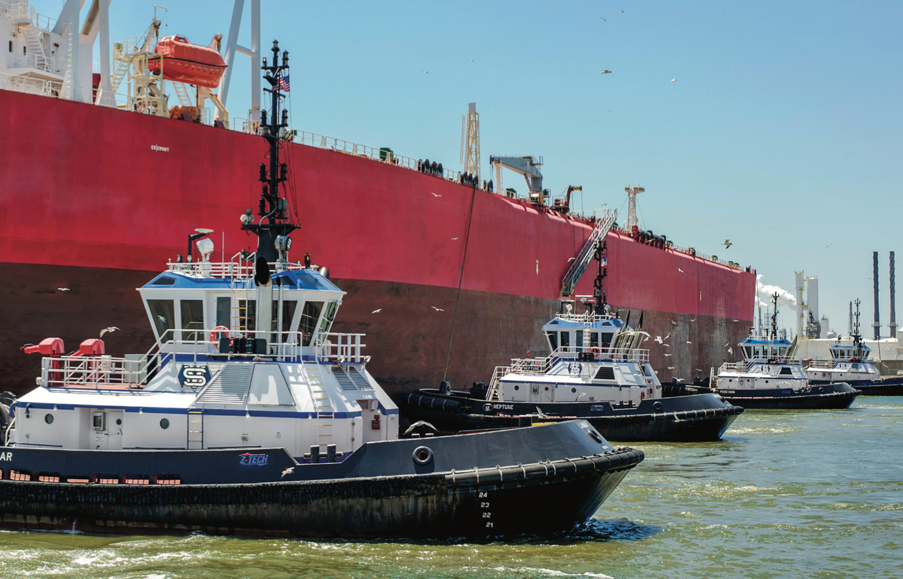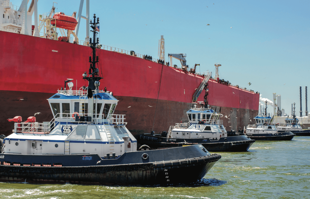 La marca TUG (a veces acompañada de una flecha) en el casco indica zonas reforzadas de la estructura del barco sobre las que los remolcadores (tugs en inglés) pueden apoyarse para empujar el buque. Otro símbolo relacionado con los remolcadores es una T con una flecha en su base apuntando hacia abajo. Marca los puntos reforzados sobre los que los remolcadores pueden amarrar sus líneas de remolque. A su lado aparece la carga máxima segura (SWL, safe working load en inglés) que se puede ejercer sobre ese punto, medida en toneladas.