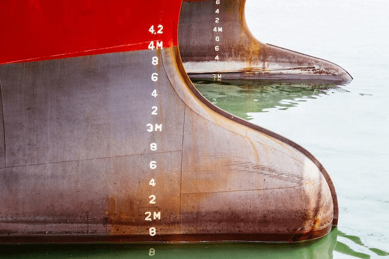 Aunque podamos hacerlo a simple vista, si queremos una medida exacta del calado del barco, es decir, cuánta distancia hay desde la superficie del agua hasta la parte más baja de su casco, tenemos que leer su escala de calados. A popa, a proa y en el centro de la eslora del barco y en cada banda esta distancia aparece medida mediante números pares en decímetros pintados y grabados sobre el casco. Mediante su lectura en los diferentes puntos del barco la tripulación puede saber si el barco está más cargado de proa o de popa o si está escorado hacia un costado.