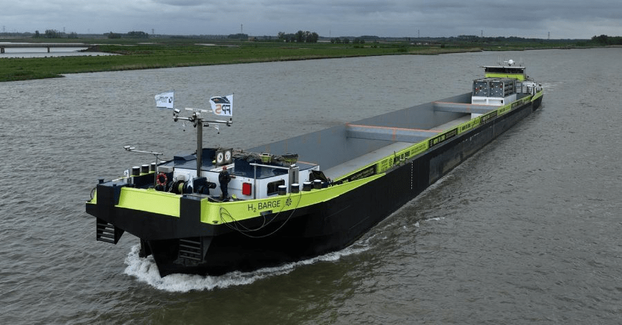 El H₂ Barge 1 es el primer carguero fluvial en el mundo propulsado por hidrógeno. Desde mediados de 2023 el buque navega entre el puerto de Róterdam (Países Bajos) y el Campus Logístico Europeo de Nike en Amberes (Bélgica) transportando mercancías de la marca deportiva sin emisiones contaminantes, suponiendo una reducción de 2.000 toneladas anuales de emisiones de CO2 a la atmósfera y contribuyendo al objetivo global de la Organización Marítima Mundial de alcanzar un transporte marítimo de cero emisiones para 2050.