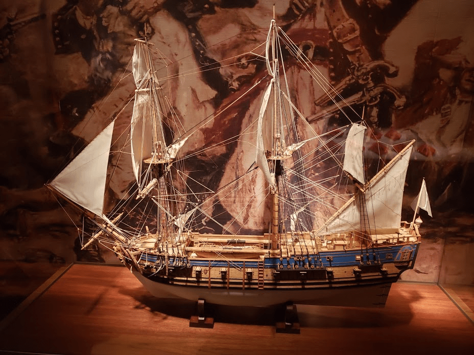 El Queen Anne’s Revenge fue el barco del pirata más famoso de todos los tiempos, el temido Barbanegra. Construido originalmente para el tráfico de esclavos entre África y América con el nombre de La Concorde, el Queen Anne’s Revenge fue más tarde el barco pirata más grande de su época. Armado con sus cuarenta cañones, sembró el terror durante un año en todo el Caribe, llegando a bloquear el puerto de Charleston en mayo de 1718 durante una semana, amenazando con sus cañones a los habitantes de la ciudad y saqueando a todo barco que intentaba entrar o salir del puerto. En junio de ese mismo año el buque encalló en los bancos de arena del canal de Beaufort, rompiendo el palo mayor y dañando gravemente el casco. Aunque intentaron recuperarlo con la marea alta, los daños en el barco eran irreparables. Barbanegra tomó la decisión de trasladar su carga a otro barco de su flota y abandonar allí mismo al Queen Anne´s Revenge, en donde permaneció oculto hasta 1996, año en que el director de operaciones de la empresa cazatesoros Intersal, Mike Daniel, y el arqueólogo marino David Moore encontraron sus restos.