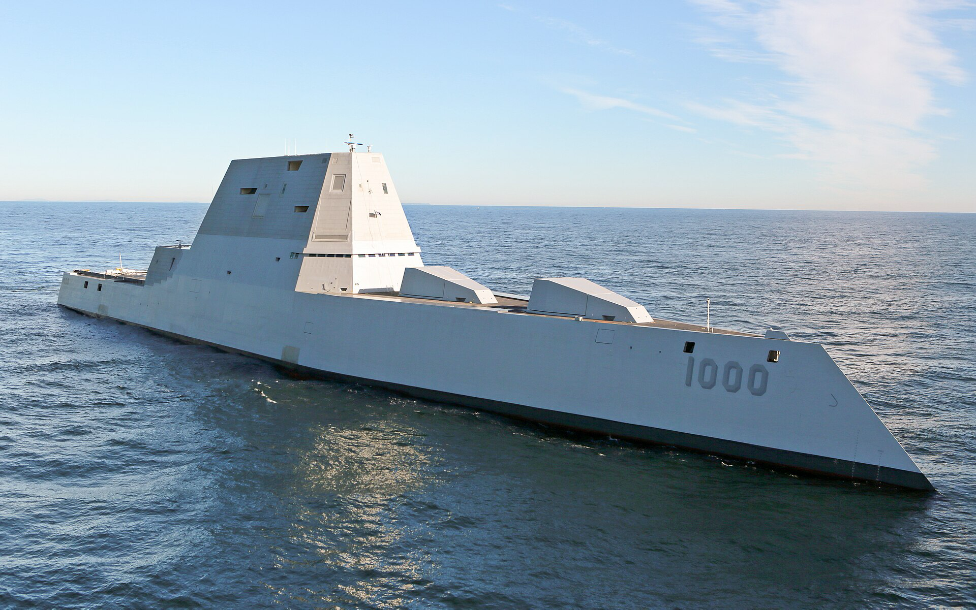 El USS Zumwalt es el primero y el que da nombre a una clase de destructores de la U.S. Navy, diseñados para diferentes tareas como la guerra de superficie, la guerra antiaérea y el fuego de apoyo naval, más grandes y más rápidos que cualquier destructor anterior, y que cuentan con una serie de tecnologías de última generación. Aunque originalmente se planeó la construcción de 32 buques de la clase Zumwalt, los costes implicados en las nuevas tecnologías a implementar en estos navíos y las preferencias de la marina de guerra estadounidense por incrementar el número de destructores de la clase Arleigh Burke obligaron a reducir la cantidad primero a 24 unidades, más adelante a 10, luego a 7 y finalmente a tan solo 3 buques, que son los que se han construido. Esto ha hecho que el coste de I+D implicado en el desarrollo de la clase se dispare a 2.400 millones de euros por buque.