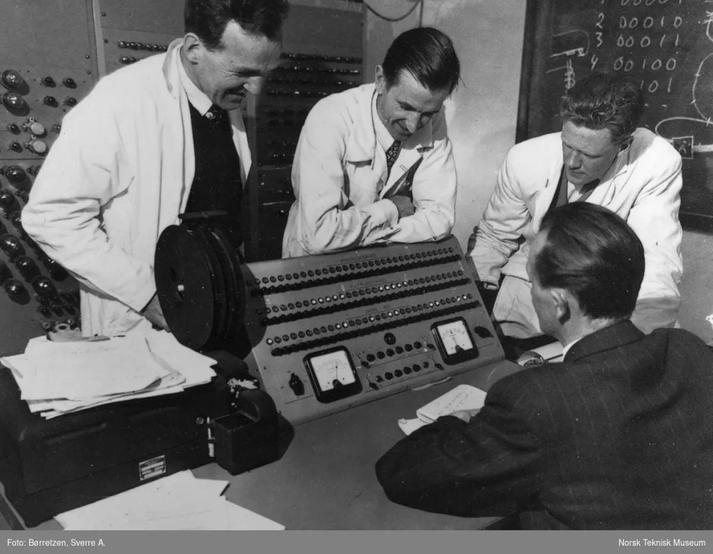 Thomas Hysing (1917 – 2010) es una pieza clave en el desarrollo de la informática en Noruega. Tras graduarse como ingeniero civil en el Instituto Noruego de Tecnología, Hysing tuvo su primer contacto con el mundo de los ordenadores durante una estancia en la sede central de IBM en Nueva York, antes de incorporarse al Instituto Central de Investigaciones Industriales noruego (SI) en 1949. Decididos a fabricar el primer computador noruego, el Instituto envió a Hysing a la Universidad de Cambridge para familiarizarse con uno de los primeros ordenadores en el mundo, el Electronic Delay Storage Automatic Calculator (EDSAC) de Maurice Wilkes. De vuelta a Oslo, Hysing lideró entre 1950 y 1954 en SI la fabricación del NUSSE (Norsk Universell Siffermaskin, Sekvensstyrt, Elektronisk), el primer ordenador del país nórdico. El NUSSE estaba formado por unos mil tubos de vacío, una unidad central de APEXC, 512 palabras (32 dígitos) de memoria, unidades de entrada y salida para cinta perforada de 5 canales y su propia impresora, construida por el grupo de Hysing. Su capacidad de cálculo era de 500 sumas por segundo. Sin embargo, la industria no vio la necesidad de utilizar un ordenador en sus procesos, que podían cubrir con reglas de cálculo y cálculos manuales sencillos. Así que el NUSSE se llevó al Centro Noruego de Computación de Oslo hasta que el SI pudiera encontrar una aplicación en la industria en dónde sus capacidades fueran necesarias. Y la oportunidad llegó de la mano del grupo Aker.