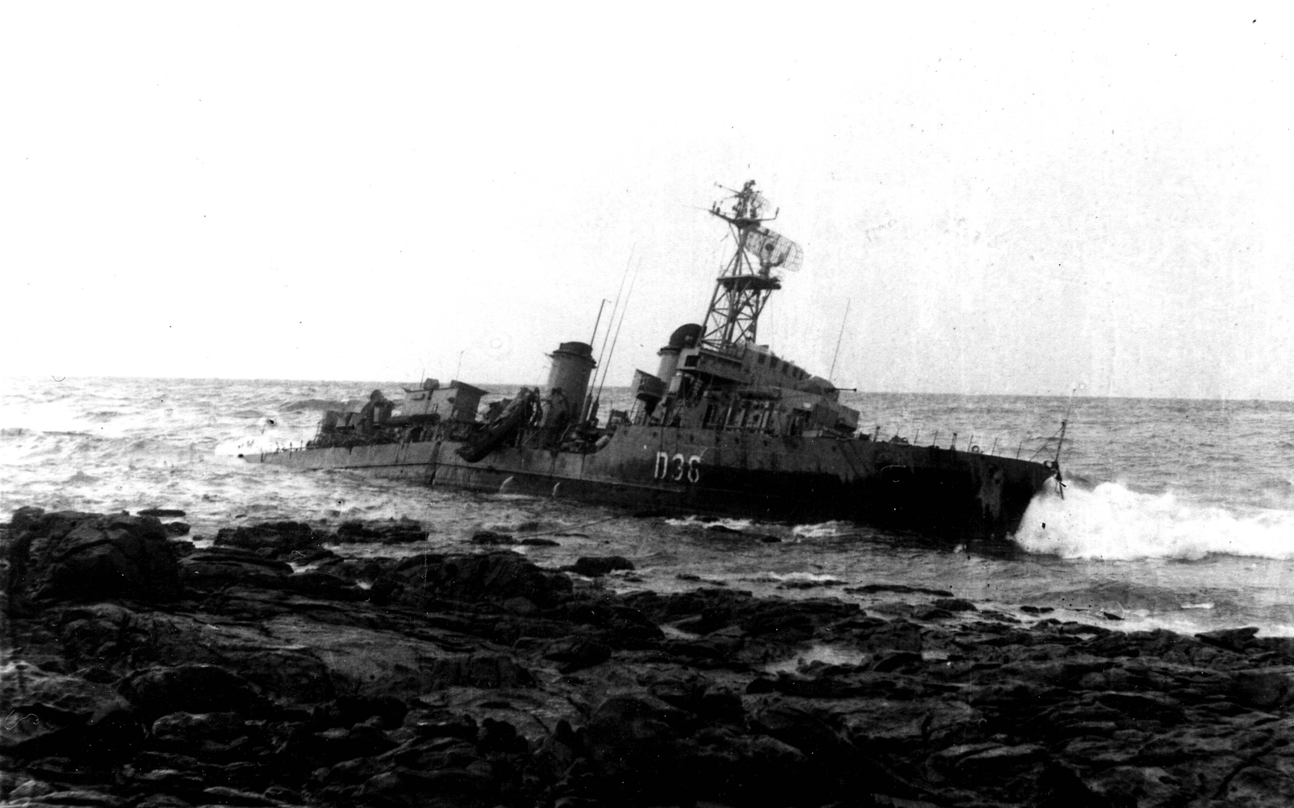 Cuatro años después de su entrega, el 25 de febrero de 1966 el Ariete dejaba Ferrol con destino a Cartagena. Poco después de su partida el buque fue sorprendido por un temporal en la Costa da Morte con olas de hasta 12 metros. A merced de la tempestad, el barco fue arrastrado hacia la costa de Carnota, embarrancado en la playa de Ardeleiro. La tripulación del Ariete fue rescatada por los propios vecinos de la zona, que en tan solo un cuarto de hora consiguieron trasladar a tierra hasta al último de los 168 hombres que componían la dotación del buque, sin que alguno sufriera ningún daño. La actuación de sus vecinos le valió a Carnota la concesión del título de población «muy humanitaria» según el decreto 3290/1966 del 29 de diciembre de 1966. Aunque se intentó recuperar el barco, la rotura de su casco hizo que en marzo se diera por perdido. En el lugar del hundimiento se instaló un monolito y el ancla del buque como recuerdo de su naufragio y de la acción humanitaria de los vecinos de la zona.