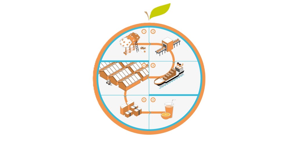 El 90% del zumo de naranja que tomamos en Europa procede de Brasil, país en donde se produce 1 de cada 5 naranjas del planeta. Las naranjas se recogen, se exprimen y el zumo se divide en dos tipos de procesado. Por un lado, tenemos el concentrado de zumo de naranja, en el que se le elimina gran parte del agua y se convierte en un producto con mayor densidad y viscosidad, que puede transportarse congelado a -10ºC, con una consistencia similar a un granizado. El concentrado es más fácil de manipular y almacenar, reduciendo los costes de transporte y almacenamiento.