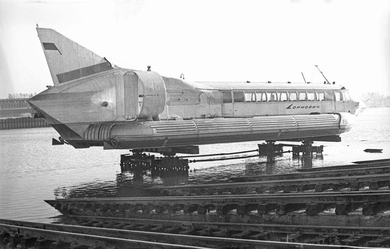 Los astilleros soviéticos de Krasnoye Sormovo de Gorky (llamada antes y después de la Unión Soviética Nizhny Novgorod) fueron un hervidero de innovaciones para el transporte marítimo durante la década de los años 50 del siglo pasado. Del trabajo de ingenieros como Rostislav Alekseyev salieron inventos como los hidroalas, capaces de transportar hasta 150 pasajeros a velocidades de 54 nudos, o los ekranoplanos, un híbrido de avión y barco capaz de volar a pocos metros del agua a velocidades de hasta 600 kilómetros por hora gracias al efecto suelo, transportando grandes cantidades de material o personas a largas distancias.