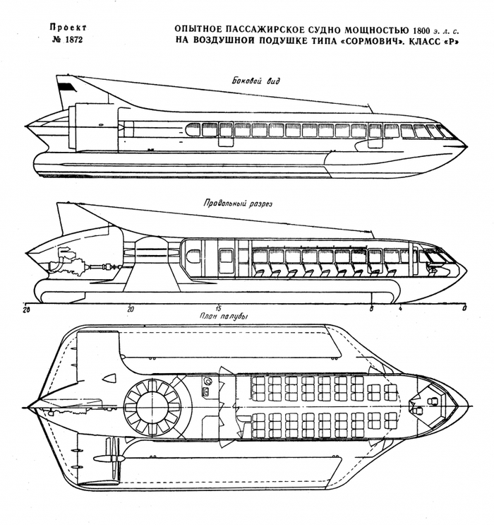 El proyecto de esta novedosa embarcación se desarrolló en la oficina de ingeniería del astillero bajo el mando del responsable de diseño A. A. Zhivotovsky, al que se unieron ingenieros del Instituto Central de Aerodinámica de Moscú. El resultado salió a la luz en 1965. El Sormovich era un aerodeslizador de 29,2 metros de eslora por 11 metros de manga y un puntal de 7,8 metros. Toda su estructura, fabricada en una aleación de aluminio y magnesio, era soportada por un cojín de aire de 208 metros cuadrados sometido a una presión de 130 kg/m2.