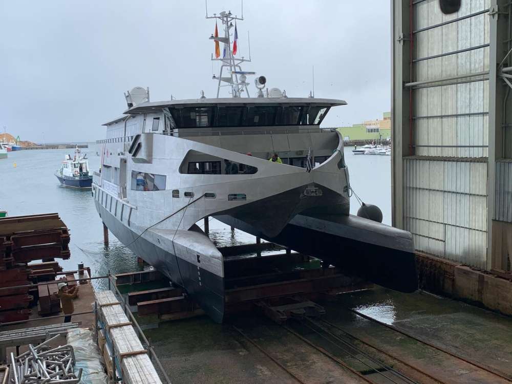 Este mes de enero ha sido entregado al transportista francés el primero de seis nuevos catamaranes de aluminio, bautizado como “Bindy II”. Diseñado por la ingeniería francesa Mauric y con unas dimensiones de 29,9 metros de eslora por 10,7 de manga y un doble casco wave piercing, es decir, capaz de atravesar las olas sin apenas cabeceo en lugar de remontarlas, la nueva embarcación podrá transportar hasta 400 pasajeros repartidos en dos cubiertas y estará tripulada por cinco personas. Bajo su cubierta, dos motores MAN de bajas emisiones y 1.000 kW de potencia cada uno permitirán que el barco alcance los 20 nudos de velocidad, con el máximo confort para sus pasajeros gracias al diseño de sus cascos.