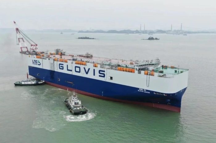 Desarrollado conjuntamente por el Shanghai Merchant Ship Design and Research Institute y el astillero Guangzhou Shipyard International perteneciente al conglomerado estatal CSSC (China State Shipbuilding Corporation), el “Glovis Leader” fue botado el pasado 21 de enero. Con 230 metros de eslora, el buque cuenta con 14 cubiertas, 5 de ellas móviles, que permiten transportar con flexibilidad todo tipo de carga rodada, como vehículos de combustión, eléctricos o camiones pesados. Otra de las características principales del nuevo barco es su propulsión mediante gas natural licuado (GNL), combustible de transición hacia un futuro de cero emisiones en el sector naval y que le permite cumplir con el estándar Tier III de emisiones de la Organización Marítima Internacional.